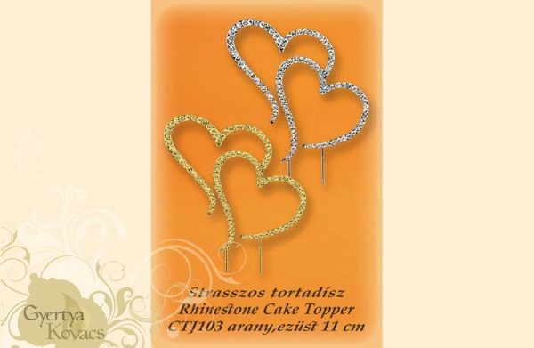 Strasszos beszúró arany dupla szív