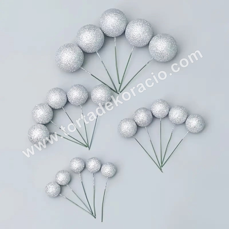 Tortadísz gömb beszúró 20 db/cs, csillámos ezüst