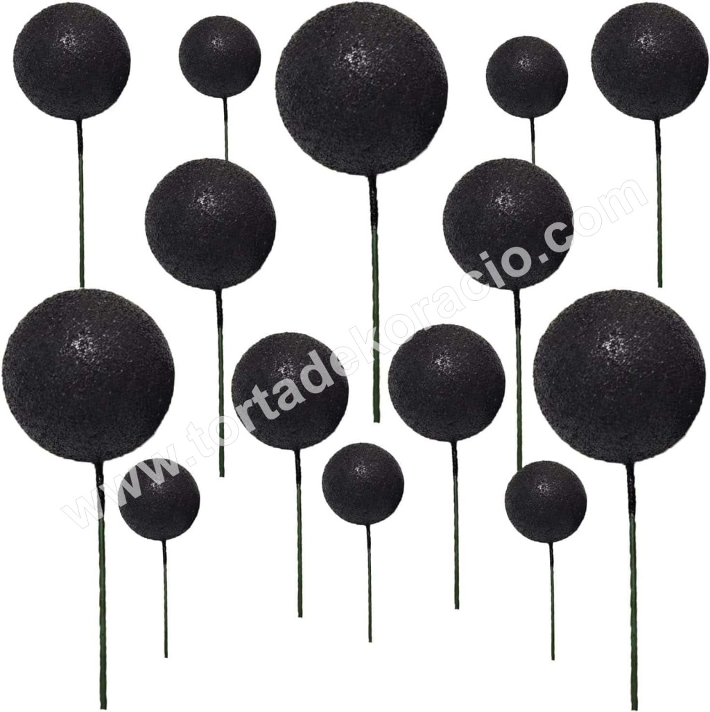 Tortadísz gömb beszúró 20 db/cs, csillámos fekete