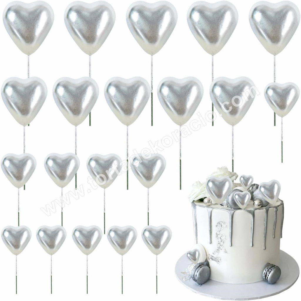 Tortadísz szív beszúró 20 db/cs, ezüst
