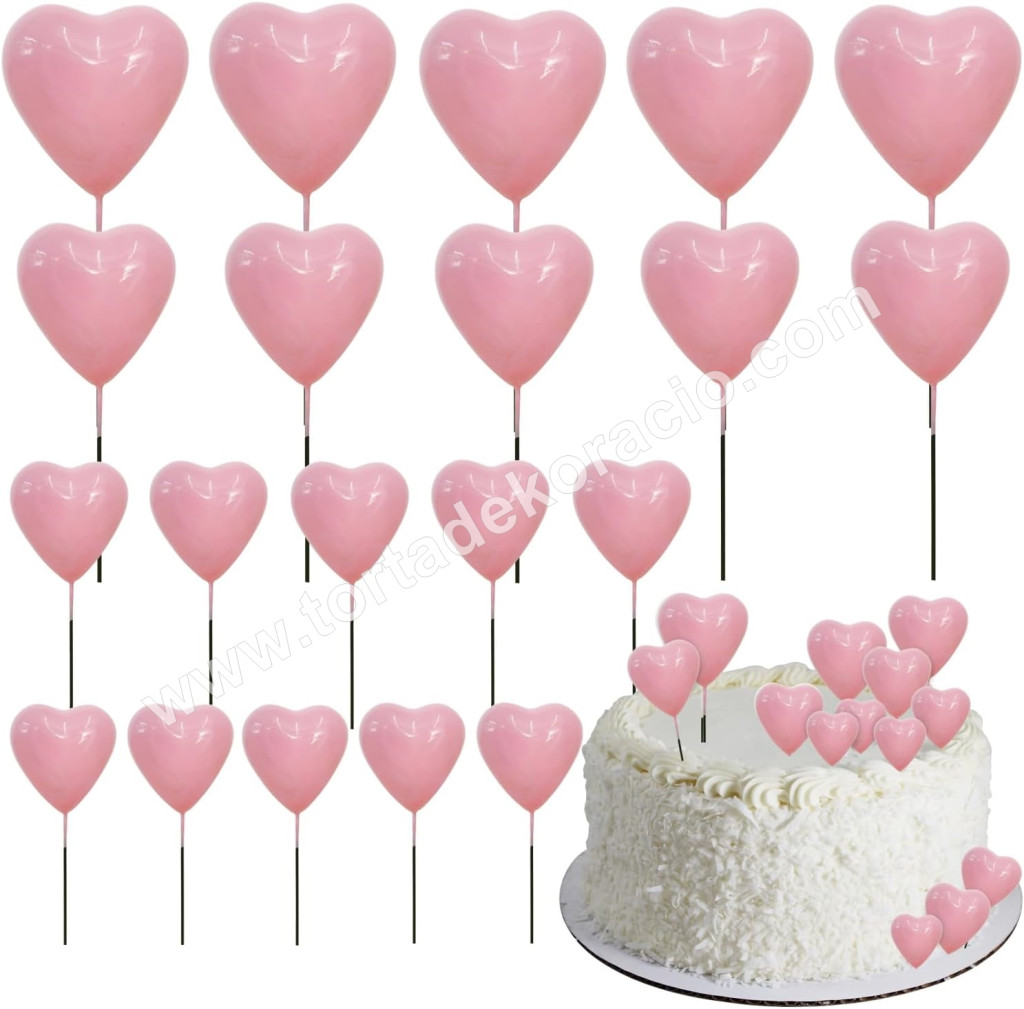 Tortadísz szív beszúró 20 db/cs, rózsaszín